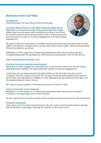 Mahbubul has been engaged as a Board Director at the Security Institute for the last 3 years,
