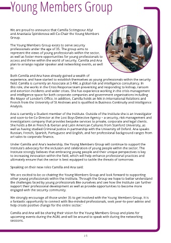 Under Camilla and Ana’s leadership, the Young Members Group will continue to support the
