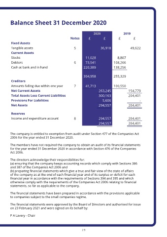 Balance Sheet 31 December 2020