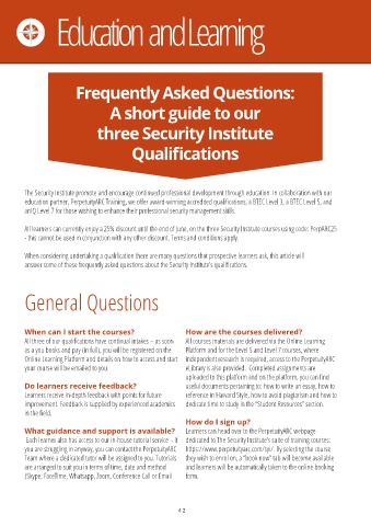 Each learner also has access to our in-house tutorial service - if dedicated to The Security Institute’s suite of training courses: