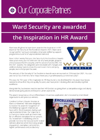 Award at the Security & Fire Excellence Awards 2021. Ward were